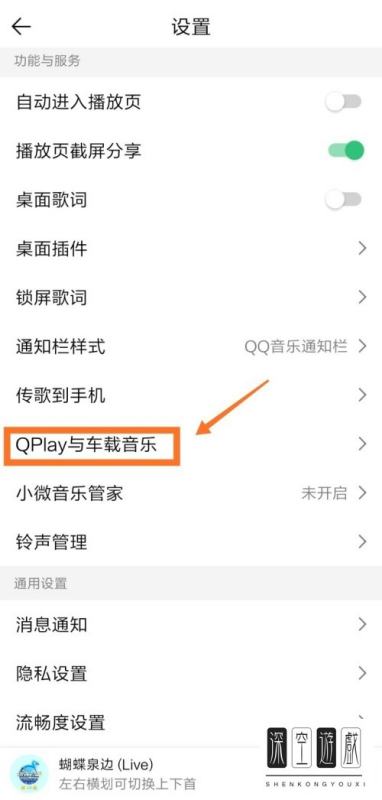 4. 第四步,向下滑动页面,并找到QPlay与车载音乐功能选项。