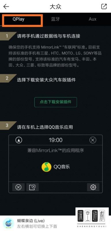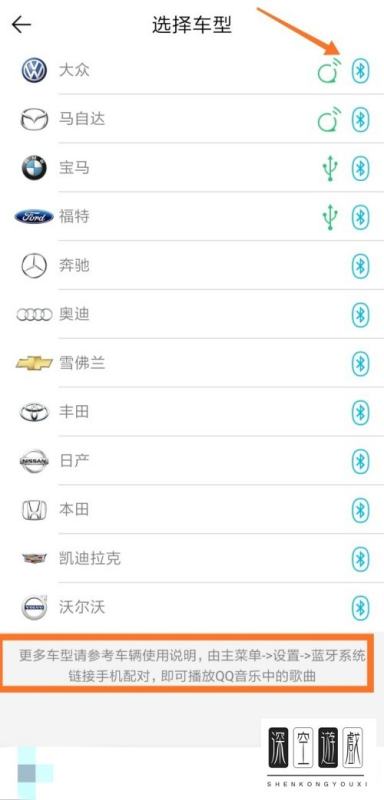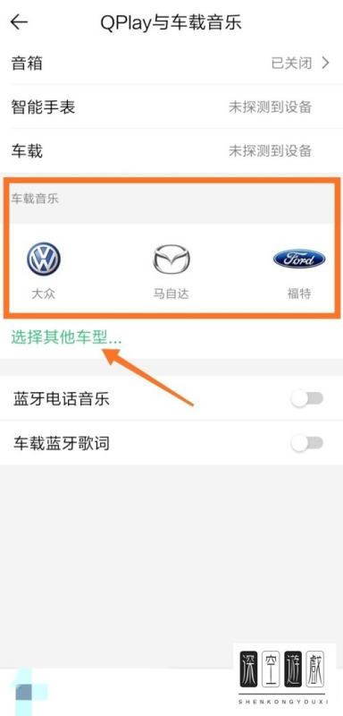 5.第五步,点击该选项,将自动跳转至QPlay与车载音乐页面,在下方选择自己的车子的型号。