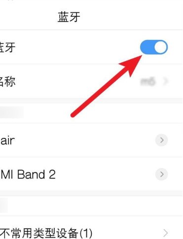 4、接下来,进入蓝牙页面后,点击后面开启按钮,如下图所示。