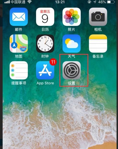 3、此时按home键返回苹果8手机桌面,点击进入设置,如下图所示。