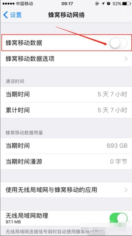 3、打开手机的流量设置页面,将手机的流量功能关闭。