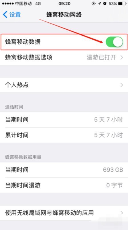 5、重启手机之后,再次打开手机的流量功能。