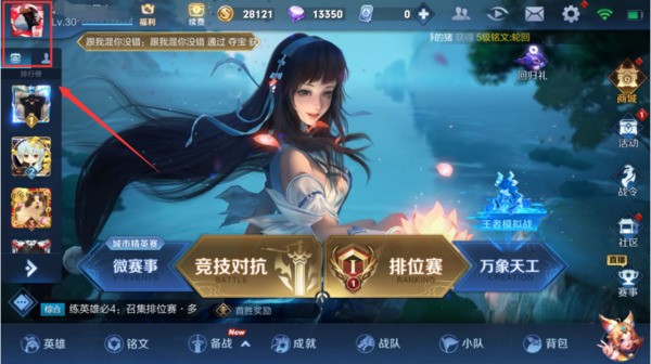 打开王者荣耀游戏,点击个人头像进入个人主页。